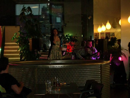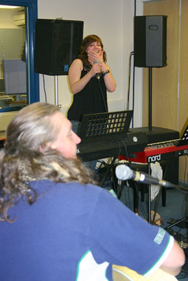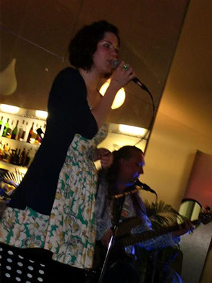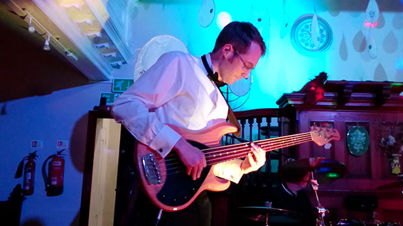 Bo - bass player with Rose & The Thorns - in full flow at the EP launch