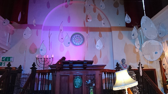 The amazing backdrop behind the stage area at The Hermon Chapel